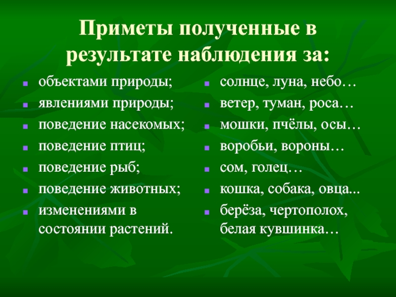 Размеры: 720 х 540 пикселей, формат: .jpg. Чтобы бесплатно скачать слайд для использования на уроке, щёлкните на изображении правой кнопкой мышки и нажмите «Сохранить изображение как. ». Скачать всю презентацию «Народные приметы.pptx» можно в zip-архиве размером 2872 КБ.