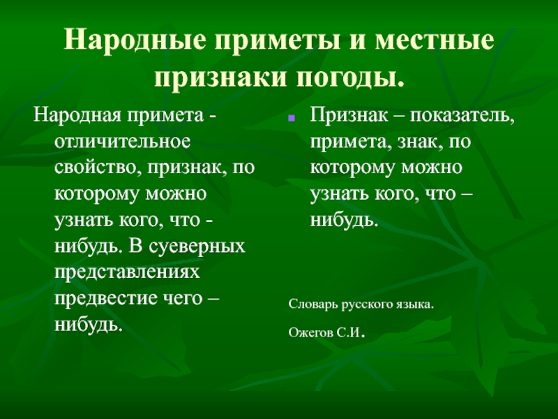 Народные приметы и местные признаки погоды – это понятия, имеющие одинаковый смысл.