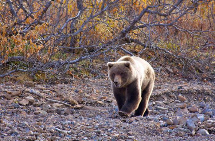 Когда рыба идет на нерест, большинство медведей обитают вблизи нерестовых рек. Отъевшись, хищники уходят на травы или ягодники, а по истечении определенного времени снова возвращаются к реке. Так они вносят в меню разнообразие и обогащают рацион. Осенью, в октябре-ноябре, перед залеганием в берлогу, медведи, постепенно перемещаясь и питаясь орехами кедровых стлаников и ягодами, уходят от рек к местам зимовок.