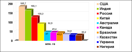 Крупнейшие страны мира по размерам площади пашни: