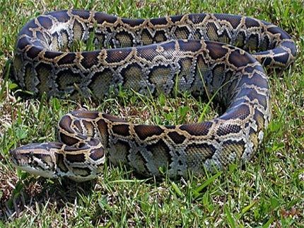 Это питон самый крупный из подвида тигрового питона. Он может вырастать до 8 метров и больше. Впрочем, обычно встречаются особи длиной до 5,5 метров. Вес змеи составляет около 70-ти килограммов.