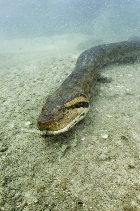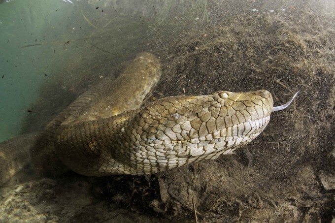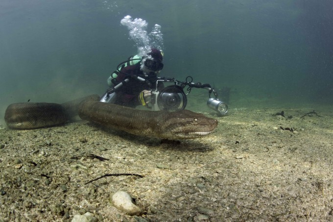 Подводный фотограф из Швейцарии Франко Банфи рискнул жизнью ради эксклюзивного материала и опустился на дно реки Амазонки в Бразилии, чтобы поплавать вместе с гигантскими анакондами.
