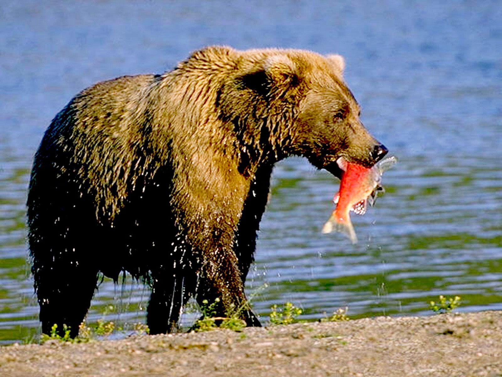 Часто наблюдают медведей поблизости рек в период хода лосося. Они хорошо плавают и искусно ловят рыбу, идущую на нерест. Падаль – еще один источник пропитания.