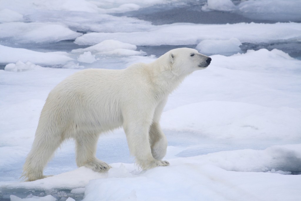 – самый крупный из медведей, да и вообще среди всех наземных хищников. Некоторое экземпляры достигают трех метров в длину и весят целую тонну. Этот вид медведя имеет белую окраску шерсти, которая позволяет ему оставаться незамеченным среди льдов Арктики.