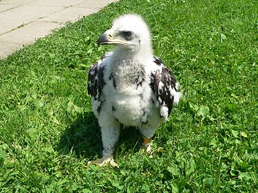 Покрытые белым с сероватым налётом пухом птенцы появляются на свет в том же порядке, что и откладывались яйца — с интервалом в несколько дней. При этом больше шансов выжить у первенца, который ведёт себя агрессивно по отношению к младшим братьям и сёстрам — клюёт их, отталкивает и не даёт принимать пищу. При этом родители остаются безучастны к происходящему. В результате 50—80 % появившихся вторыми птенцов погибают в первые же две недели жизни. [31] Пока птенцы маленькие и беспомощные, самец самостоятельно добывает корм и приносит его в гнездо, в то время как самка согревает и кормит выводок, разрывая добычу на части. Как только птенцы подрастают и начинают самостоятельно склёвывать пищу, самка также вылетает на охоту. [36] В возрасте 65—80 дней орлята встают на крыло, однако ещё долго остаются в пределах гнездового участка — например, в Шотландии и Скандинавии до октября, а в Альпах до зимы, в некоторых случаях до января. [2] Продолжительность жизни беркутов на воле в среднем составляет около 23 лет [37] , так что даже при малой репродуктивности популяция остаётся стабильной. Максимально известный возраст в дикой природе в Европе был зарегистрирован в Швеции — более 32 лет. [38] В зоопарках орлы доживают до 50 лет. [31]