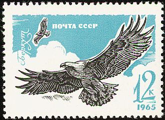 Ещё одно примечательное изображение золотого орла имеется на флаге Казахстана. Хотя в описании к флагу название беркут не упоминается, в пояснении к государственным символам подчёркивается, что беркут «занимает особое место в миропонимании кочевников», а «его изображение в гербах и флагах народов и этнических групп, населявших Казахстан, имеет давнюю традицию». [78] Из российский регионов золотой беркут присутствует на гербе и флаге Белорецкого района Башкортостана [79] и на флаге города Дальнереченска Приморского края [80] . Из казахстанских регионов пара беркутов изображены на гербе города Костанай [81] .