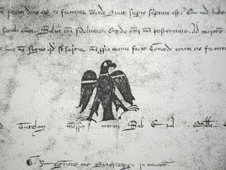 В Средние века изображение орла начало появляться на многочисленных фамильных, а затем и государственных гербах. Эта традиция сохранилась до настоящего времени. В геральдике орёл символизирует силу, мужество, дальновидность и бессмертие. [75] Среди современных государств изображение конкретно беркута имеется только на гербе и флаге Мексики. [76] Этот же орёл официально считается национальной птицей этой страны. [77] Орёл, сидящий на кактусе-опунции и пожирающий змею, появился на государственных символах благодаря преданию ацтеков, согласно которому была основана их столица Теночтитлан. Легенда гласила, что бог солнца Уицилопочтли приказал индейцам поселиться в том месте, где им встретится орёл, сидящий на высоком кактусе и удерживающий в клюве змею, что и было сделано. В 1960 году испанский орнитолог Рафаэль Мартин дель Кампо (исп. Rafael Martín del Campo ) идентифицировал изображённую птицу как обыкновенную каракару, широко распространённую в Мексике, однако тем не менее на официальном уровне орёл именуется águila real (буквально «королевский орёл» — испанское название беркута). [76]