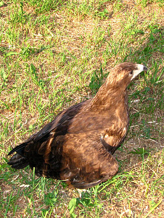 Беркут ( Aquila chrysaetos) — одна из наиболее известных хищных птиц семейства ястребиных, самый крупный орёл. Распространён в северном полушарии, где обитает преимущественно в горах, в меньшей степени на равнинных открытых и полуоткрытых ландшафтах. Избегает жилых районов, чувствителен к беспокойству со стороны человека. На большей части ареала живёт оседло, держится парами возле гнезда, на северной периферии области распространения и высокогорья часть птиц откочёвывает в менее снежные районы. Охотится на самую разнообразную дичь, чаще всего зайцев, грызунов и многие виды птиц. Иногда нападает на овец, телят и детёнышей оленей. Гнездо устраивает на дереве либо на труднодоступном скалистом уступе. В кладке обычно два яйца, однако чаще всего выживает только один птенец.
