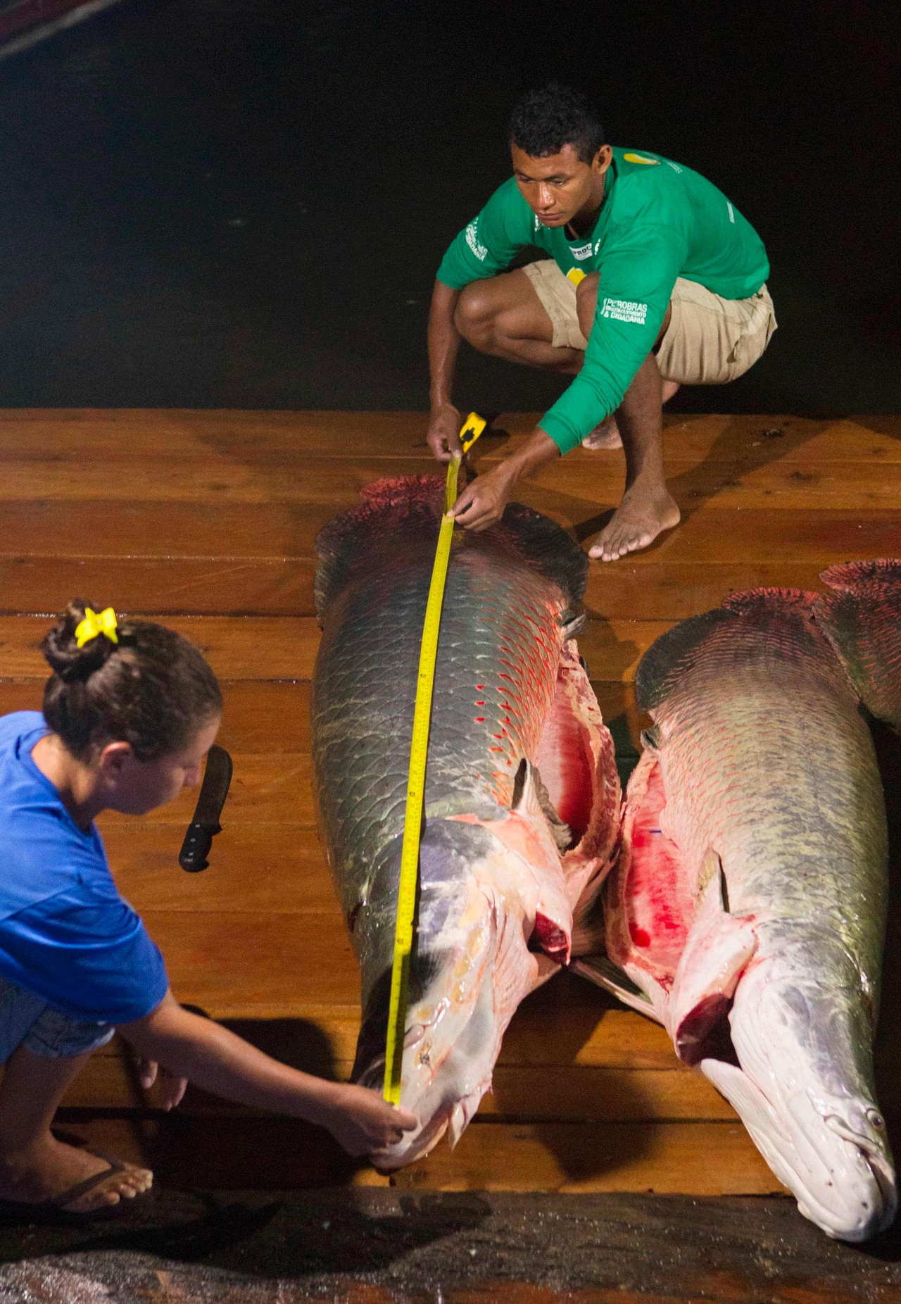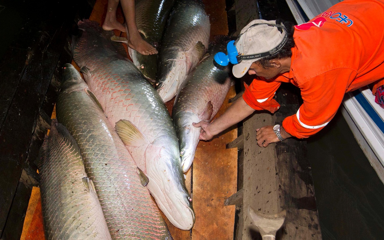 Арапайма согласно мировому рекорду IGFA является крупнейшей рыбой обитающей в водоемах. Арапайма, также известная как «pirarucu» или «paiche», - это гигантские плотоядные рыбы, живущие в Амазонке и ближайших озерах. Будучи усеянными бронированными чешуйками, они не парятся из-за что живут в водах насыщенных пираньями, поскольку они являются довольно проворными хищниками, которые поедают рыбу и случайно проплывающую птицу. Как правило, арапаймы находятся возле поверхности, потому что им необходимо дышать обычным воздухом, а также получать кислород из воды при помощи своих жабр. Они делают характерный кашель, когда появляются на поверхности. Близость арапаймы к поверхности воды делает ее уязвимой для людей-охотников, которые могут легко атаковать гарпунами. Некоторые коренные общины потребляют мясо и язык арапаймы, превращая их в ювелирные изделия и другие предметы.