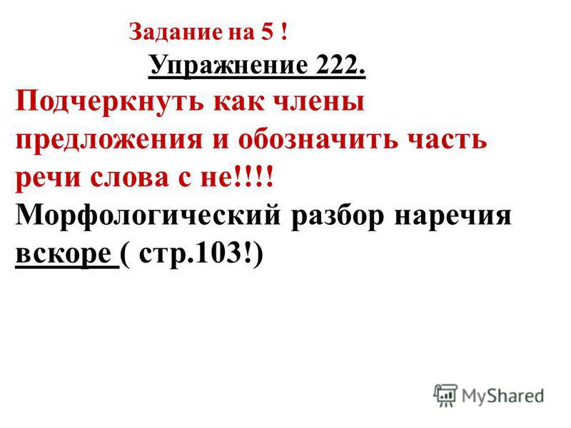 1. Недисциплинированность заключается не в шалостях и незначительных нарушениях правил поведения, а прежде всего в невыполнении обязанностей школьника в учении, в нерадивом отношении к общественно полезному производительному труду, в стремлении переложить свою долю труда на других (Сухомл.) 2. Несамостоятельное выполнение учебных заданий - первый шаг к тунеядству. (Сухомл.) 3. Жизнь современного человека немыслима без постоянного духовного общения с книгой. (Сухомл.) 4. В молчании добро должно твориться. Но нечего об этом толковать (П.) 5. На склоне неглубокого оврага виднелась пасека. (Т.) 6. Вечерняя заря погасла, и в воздухе, еще светлом, хотя не озаренном более лучами закатившегося солнца, начинали густеть и разливаться холодные тени. (Т.) 7. Никто в доме не знал о предполагаемом побеге. (П.) 8. Осень стояла небывалая, сухая, бодрая, с ясностью холодноватого воздуха. (Пауст.) 9. У нас не было воды, хотелось пить. (Пауст.) 10. Выше подымается солнце, нестерпимо раскатывается ружейная и пулеметная трескотня. (Сераф.) 11. Распахнув дверь, командир неторопливо спустился к коню. (Гайд.) 12. Кто хоть раз увидел Приамурье, тот его не мог не полюбить. (В. Гусев.) 13. Всего знать никто не может, а стыдно и вредно притворяться, что знаешь, чего не знаешь. (Л. Т.) 14. Несколько дней подряд я был занят чтением. (Гайд.) 15. Старик неохотно встал и вышел за мной на улицу. (Т.) 16. Высоко в небе над неоттаявшей землей заливался жаворонок. 17. На каникулах мы никуда не ездили, да и некуда было ехать. 18. Домой мы возвращались по неосвещенным улицам. 19. Дверь нам открыл мужчина. Заспанное его лицо было не злое, а скорее доброе. 20. Из соседней комнаты доносились голоса. Один из споривших явно негодовал. 21. У входа в кабинет беседовали двое. Один из них улыбался, но не мягко и дружелюбно, как обычно, а холодно и натянуто. 22. Недоумевая, я стал перечитывать письмо. 23. Решение нужно было принимать срочно, а посоветоваться не с кем. 24. Все места в зале уже были заняты, сесть нам было негде. 25 Лед на реке был не окрепший, а только слегка стянутый прозрачной корочкой. 26. Неожиданно мы вышли на большую солнечную поляну. Трава здесь была сочная, зеленая, никем не помятая. 27. Возвращаться на старую стоянку нам было уже незачем. 28. Многие вопросы сельскохозяйственной науки до сих пор не решены и ждут исследования. 29. Не зажигая огня, мы сидели тихо и переговаривались. 30. Не место красит человека, а человек место. (Посл.)