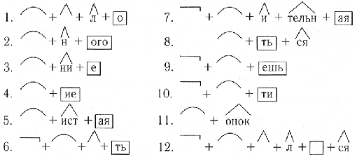 1) Составить слова по данным схемам, указать принадлежность этих слов к частям речи.