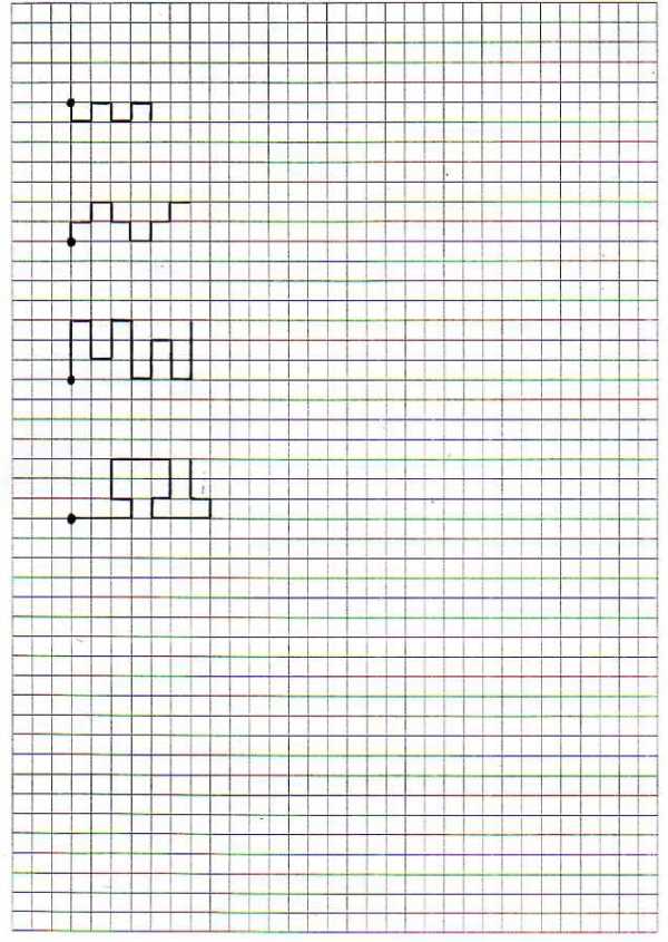 1. Ребенку предлагают образец геометрического рисунка и просят его повторить точно такой же рисунок в тетради в клетку.