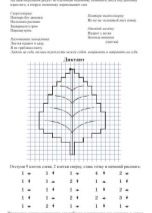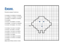Как правило, сделать такое задание под диктовку просто невозможно. Необходимо распечатывать образец выполнения в цветном варианте и копировать его на своем листе , самостоятельно отсчитывая то количество клеток, которое необходимо закрасить определенным цветом.