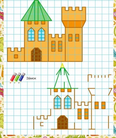 Ребенок рисует по клеточкам под диктование задания взрослым. При этом он внимательно слушает, что нужно делать, т. е. учится слушать и слышать, что говорит ему взрослый, сосредотачиваться на сказанном. Эти умения являются одними из самых важных в обучении в школе.
