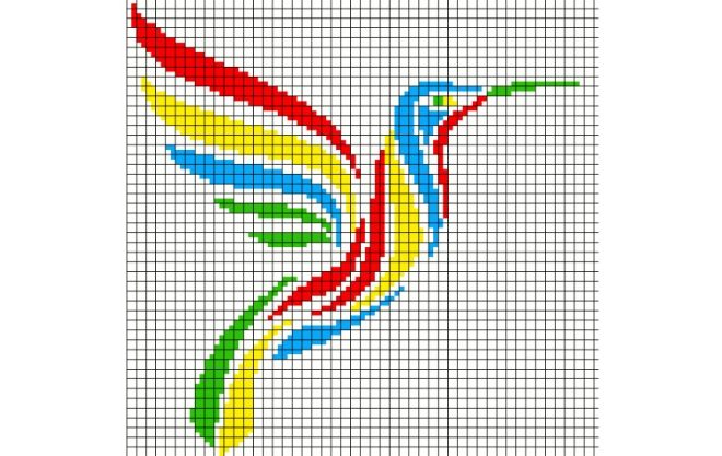 Выполнение сложных работ не предполагает никаких ограничений. Все зависит только от вашего терпения и возможностей. Картины могут быть разного размера, выполняться как в одном цвете, так и в разных. Принцип выполнения задания несколько меняется. Здесь не просто проводятся линии, создавая контур предмета, а закрашиваются целые ряды клеток.