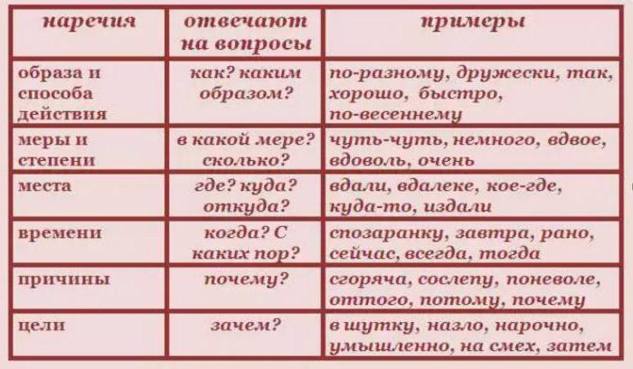VII. Домашнее задание. Таблицу выучить, записать свои примеры наречий по таблице.