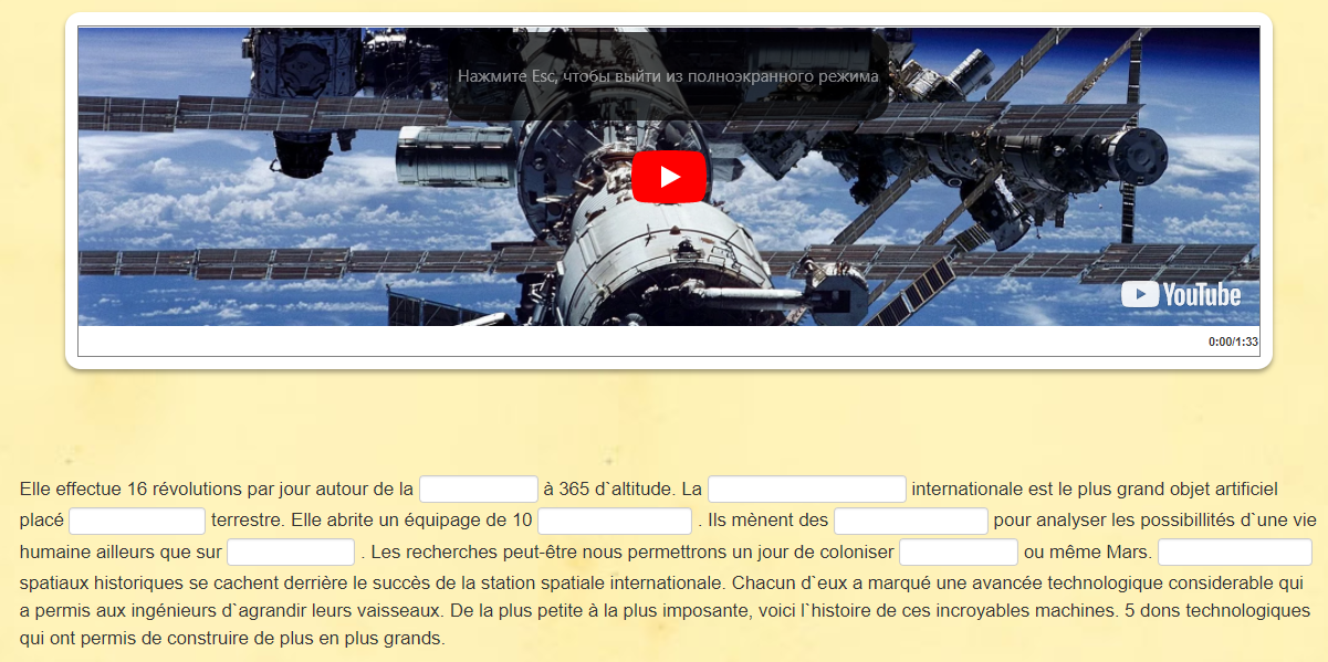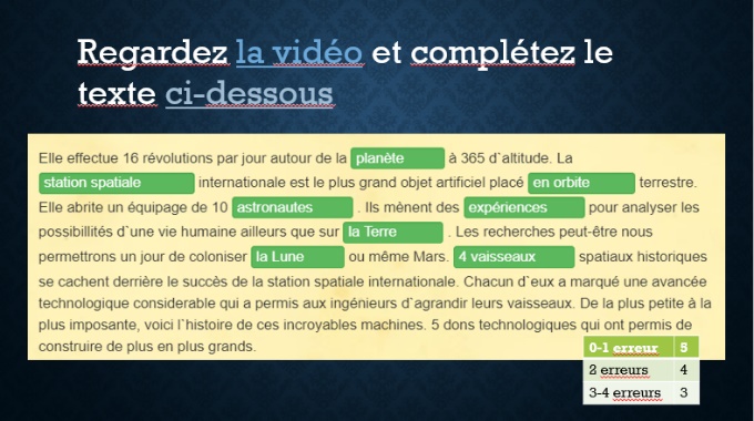 «Les Français dans l’espace», вопросы после текста.