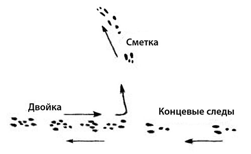 Среди охотников существует обозначение следов зверя, точнее, его полного пути или тропы.