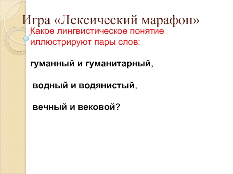 Мы закончили изучение раздела, который называется "Лексика" и сейчас вспомним все то, что изучили на прошлых уроках по этой теме. Посмотрим презентацию. Лексика