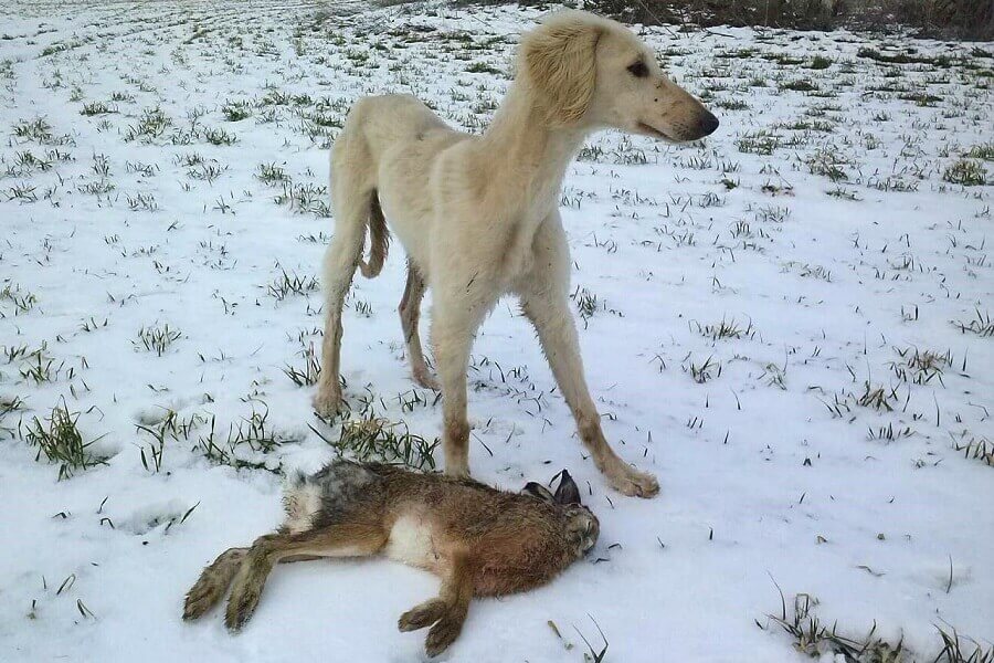 Кроме охоты на зайца с гончими, не меньший интерес представляет ловля зайца с другими собаками – борзыми. Это одиночный ловец, но для настоящей охоты желательно иметь хотя бы небольшую свору из 2-3 собак. В отличие от гончих, охота с борзыми на зайца имеет свои особенности: собаки преследуют добычу молча, а настигнув – хватают и душат, не повреждая шкурку. Еще нюанс – как правило, промысел ведется без использования оружия: эта порода сама по себе «бегающее ружье». По существу, борзая собака освобождает охотника от многих действий, благодаря чему охоту с борзыми на зайца называют «царской» или «ленивой». Ограничением для такой охоты можно назвать неблагоприятные для собак погодные условия.