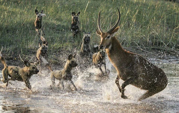 Почти каждая охота этих хищников заканчивается успешно из-за того, что делают они это сообща всей стаей, ведь им необходимо кормить каждый день взрослых членов стаи и с десяток малышей. В поисках еды собаки могут пройти до 15-20 километров.