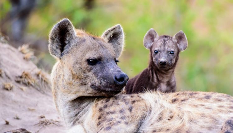 Пятнистая гиена с детенышами.