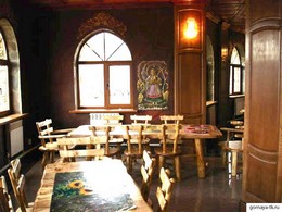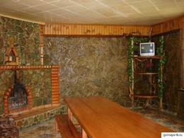 На территории – смотровая площадка, панорама видна и с балконов корпуса, расположенного на краю поляны, и из окон деревянных срубов, стоящих по ее периметру. Мангалы, сауна, кафе, горка с бугельным подъемником, прокат лыж и саней. Зимой – а она на этих высотах может задержаться до середины апреля — для любителей «экстрима» и быстрой езды - прокат снегохода YAMAHA.