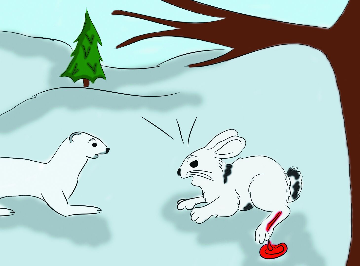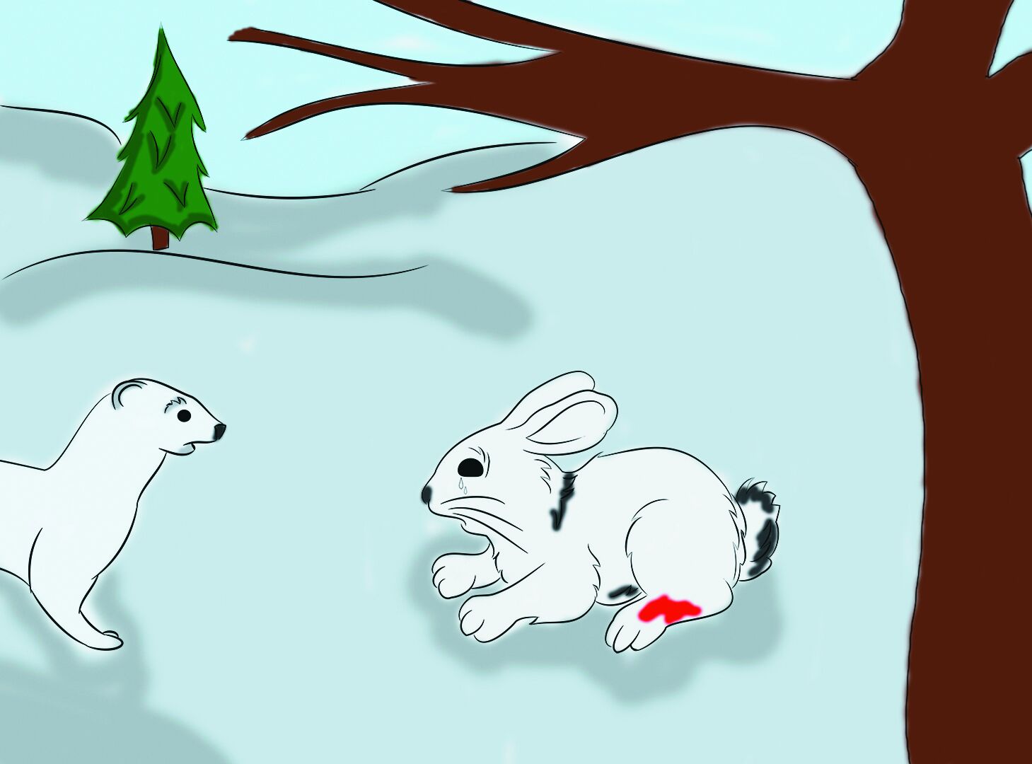 И ушёл заяц. А горностай ему вслед смотрел. Пока красные капли крови снегом не занесло.