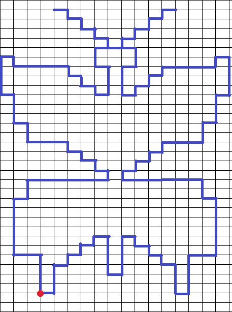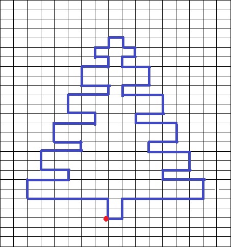 2 вверх, 6 влево, 2 вверх, 3 вправо, 1 вверх, 2 влево, 2 вверх, 3 вправо, 1вверх, 2 влево, 2 вверх, 3 вправо, 1 вверх, 2 влево, 2 вверх, 3 вправо, 1 вверх, 2 влево, 2 вверх, 2 вправо, 1 вверх, 1 влево, 1 вверх, 1 вправо, 1 вверх, 1 вправо, 1 вниз, 1 вправо, 1 вниз, 1 влево, 1 вниз, 2 вправо, 2 вниз, 2 влево, 1 вниз, 3 вправо, 2 вниз, 2 влево, 1 вниз, 3 вправо, 2 вниз, 2 влево, 1 вниз, 3 вправо, 2 вниз, 2 влево, 1 вниз, 3 вправо, 2 вниз, 6 влево, 2 вниз, 1 влево.