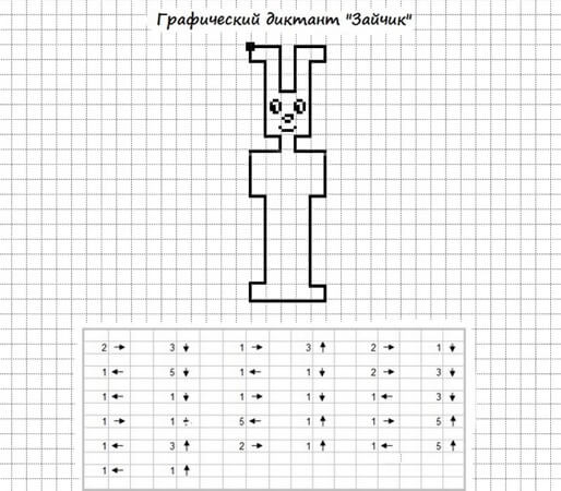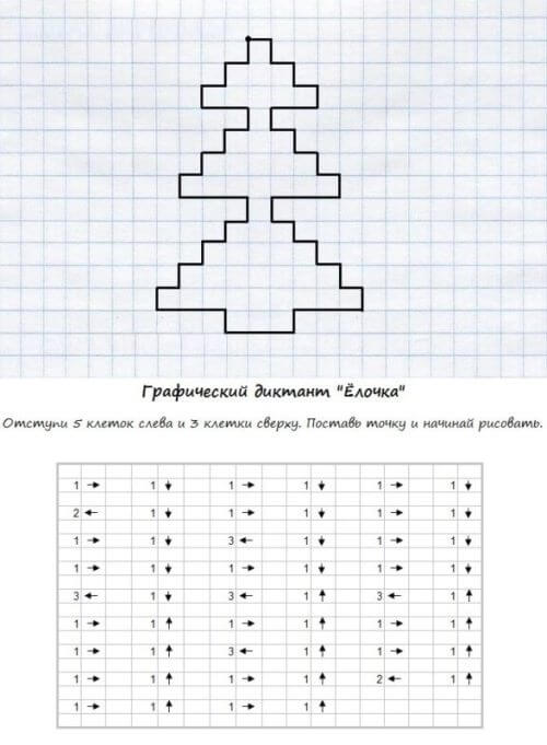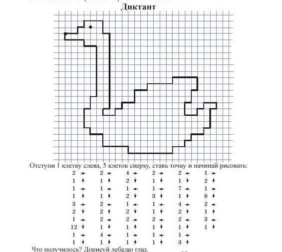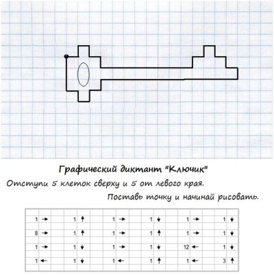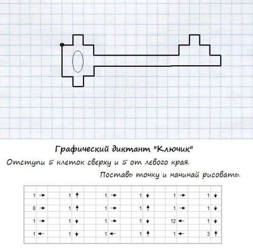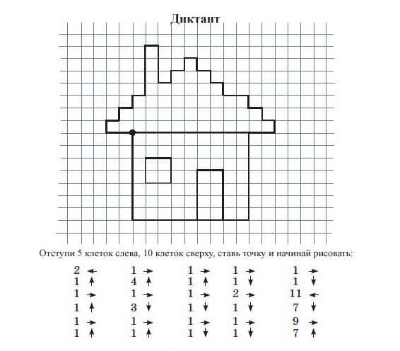 К примеру, 4 показывает ученику, что надо провести ровную линию на 4 клетки вверх. Принцип графического диктанта совсем несложный, с ним легко справится ребенок 5 -7 лет.