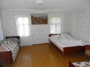 Дом 60 кв. м. Две смежных комнаты на 6 мест, кухня-столовая. Аренда дома за сутки — 2000 руб. или 400 руб. с человека.