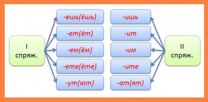 Чтобы легко выучить, запомнить и пользоваться правилом спряжений, для начала нужно понять основной принцип — существует два общих спряжения, потому что существует два типа окончаний у глаголов (если не говорить об исключениях).