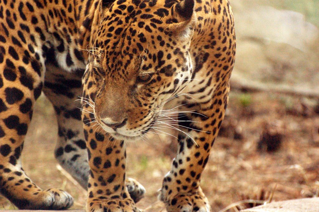 Леопарда часто путают с ягуаром. , в отличие от леопардовых кошек очень мускулистый, хотя они и похожи внешне. На самом деле леопард имеет более сильную структуру. Он имеет более длинные и стройные ноги, тонкую грудь. Ягуара можно отличить от леопарда по черному пятну в центре розетки на шкуре. Леопарды и ягуары в дикой природе обитают в разных областях.