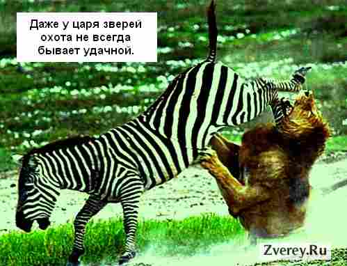 Почуяв запах добычи, одна из львиц издала гортанный звук, кошки разделились и стали окружать стадо. У зебр принцип - чем больше стадо, тем меньше шансов, что тебя съедят. Львицы тем временем окружали. Они сомкнули круг. Самая опытная из охотниц присмотрела одну зебру. У львов зрение черно-белое и им довольно тяжело отделить одну зебру от другой, зрительно. Но эта опытная. Она прижалась к земле всем телом, лишь бы ветер не переменился. Ее песочная шкура отлично сливалась с сухой травой саванны. Вдруг зебры отчаянно загикали и забрыкались - ветер переменился. Время решительных действий. Львица рванулась. Рванулись остальные. Они не волки, долго бежать не могут. Львица врезалась в толпу зебр. Огромные копыта взметали землю буквально в миллиметре от нее. Она прыгнула на спину зебре. Выпустила когти и пыталась удержаться. Она не так уж молода. Подоспели другие львицы. Ее дочь вцепилась в плечо жертве. Сестра лупила по задним ногам этого полосатого ужасно громко паникующего куска мяса. Ее лапы болели. Для надежности львица вцепилась в холку жертвы зубами. " Да падай уже!"- молило ее тело. Ее когти начали соскальзывать. Если она упадет, будет растоптана. Наконец зебра споткнулась, не удержала равновесие и упала. Дочь львицы вцепилась в горло жертве и уже не отпускала. Зебра испытала вялые попытки вырваться. Старая львица устало повалилась на траву. Ее бока тяжело вздымались. По запаху она ощутила, что зебра мертва. Сейчас придет лев. Он всегда приходит, когда жертва убита. Почему так болит голова? Послышался властный рык. Пришел большой папочка. К львице подбежала ее дочь и ласково потерлась головой о материнский бок. Лев как всегда урвал самый большой и аппетитный кусок. Львица подошла к добыче. Трапеза была хорошая, с рычанием, попытками урвать лучший кусок, оскалами и гневными взглядами.