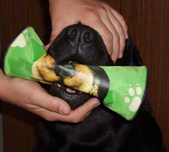 Похвалите ученика, угостите маленьким кусочком вкусного, и – снова вперед! Ваша задача – путем запретов и похвалы объяснить лабрику, что вы от него требуете, ьа именно – удерживать непродолжительное время в пасти любой предмет по вашей команде и отдавать также по команде. Время удержания нужно увеличивать по нарастающей – 3 сек - 10 сек - 30 сек и т.д. mПри правильном выполнении данного упражнения – эффект удержания до 1 минуты достигается за одно занятие. Следите, чтоб при механическом смыкании челюстей не подворачивались внутрь нежные губы собаки, расправляйте их, потом собака сама начнет беречься. Не забывайте активно хвалить щенка, если он замирает с предметом в пасти, не сопротивляясь.