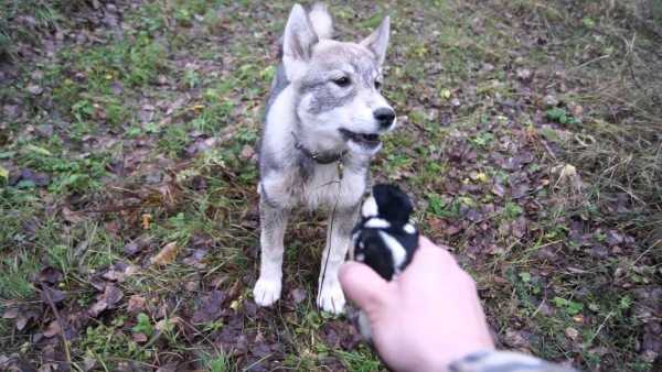 Скорее всего, щенок обязательно попытается броситься за игрушкой, но удержите его от этого, и только выждав примерно 5 секунд (в дальнейшем время выдержки постепенно увеличиваем), подав команду «подай», отпустите щенка. Он схватит игрушку, но не для того чтобы подать хозяину, а для того, чтобы поиграть с ней.