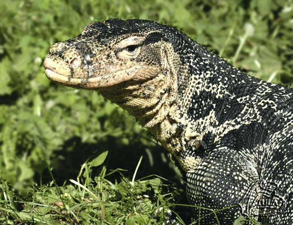 Длина взрослых особей может составлять около 70 кг, однако в неволе они могут достигать еще больших размеров. Если верить западным источникам, самая большая особь, встреченная на воле, весила аж 166 килограмм, а ее длина достигала 313 сантиметров! Окраска ящериц темно-бурая с крапинками, однако у молодняка она несколько ярче.