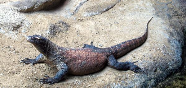 Морская игуана - необычная ящерица, обитающая исключительно на Галапагосских островах. Встречается преимущественно на скалистых берегах, солёных болотах и мангровых зарослях. Морская игуана не очень умелая на суше, однако, она хорошо плавает и ныряет. Умеет задерживать дыхание на 1 час, а также имеет уникальную среди современных ящериц способность - проводить большую часть времени в море. Питается преимущественно водорослями, иногда мелкими позвоночными. Общая длина их тела достигает 140 см, из которых более половины занимает хвост, масса до 12 кг.