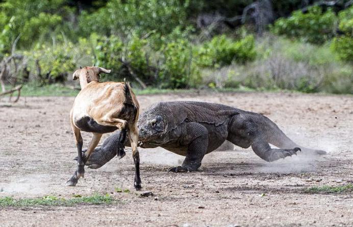 Странно, что несмотря на регулярные нападения, олени совершенно не боятся варанов, поэтому позволяют им беспрепятственно подходить. Затем хищник замирает, выбирая подходящую жертву, после чего резким ударом хвоста расправляется с ней. В основном же, комодские драконы предпочитают охотиться из засады – несмотря на то, что животные довольно подвижны и могут развивать скорость до 30 км/ч, в силу своих габаритов они не способны на долгое преследование. Комодский дракон не ядовит и не нападает на человека, но его укус может привести к летальному исходу – из-за огромного количества бактерий, содержащихся в пасти животного. Правда, известны единичные случаи нападения варана на человека – но это скорее исключение из правил, нежели типичное явление.