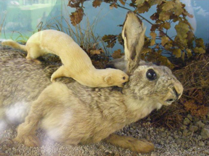 Не смотря на столь маленькие размеры, ласка считается опасным, коварным и жестоким хищником. Вес животного не более 200 граммов, а длина тела колеблется в районе 25 сантиметров. При этом самки намного меньше самцов. Охотится ласка на крыс, птиц, хомяков. Ее не смущает тот факт, что жертва может быть в несколько раз больше ее по размеру. Она невероятно проворна и изворотлива. Ее атака молниеносна. Грызунов она атакует прямо в их норах, не оставляя им шанса на спасение.