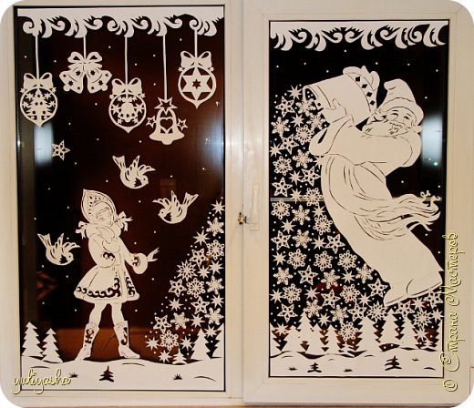 Даже такие простые вытынанки на окнах будут смотреться очень нарядно:
