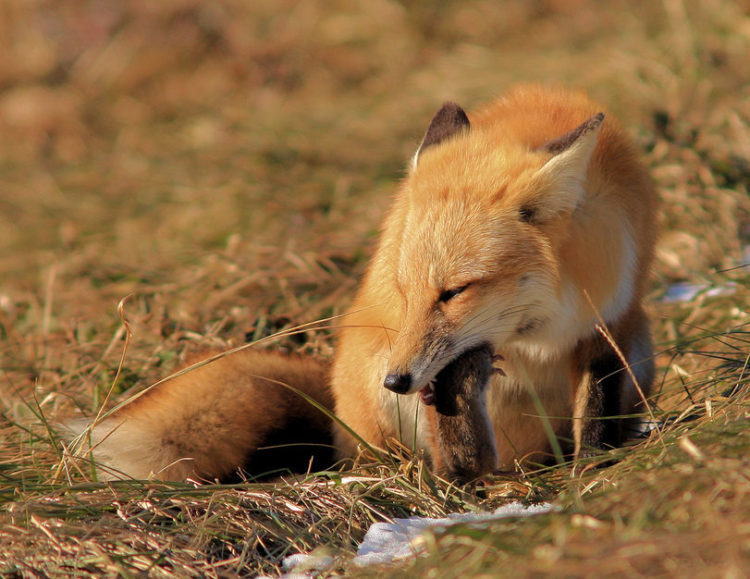 Очень интересны способы охоты лисы, она может приспособиться к повадкам любого животного, которое «присмотрела» в качестве еды. Например, ежа она может толкнуть прямо в воду, чтобы он развернулся, и его можно было ухватить за брюшко, на котором нет иголок. Когда идет охота на диких гусей, то тут лисы предпочитают действовать парами: одна отвлекает стаю, другая в это время подкрадывается и в один прыжок нападает на добычу. А грызунов она легко выкапывает из-под снега, находя место по звуку. Все-таки не зря лисы слывут хитрыми животными – какие уж только способы они не выдумывают, чтобы добыть себе еду!