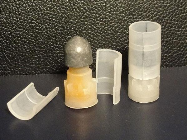 Патрон — полуразрушенный экспансивная пуля, с энергией не меньше 2500 Дж на расстоянии 100 м от ствола. При попадании она разрушается, вследствие своего строения. Рваные острые осколки усиливают поражающие действие пули. После разрушения она способна дальше проникать вглубь ткань животного. Пуля вылетает насквозь или останавливается, дойдя до кости или более плотных тканей.