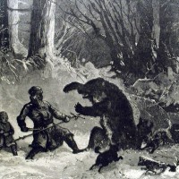 Охота с рогатиной один из излюбленных сюжетов многочисленных гравюр, гобеленов, устных преданий и рассказов. Медведь зверь крупный. Промысловики приносили шкуры огромных размеров, что послужило возникновению баек в фольклоре.