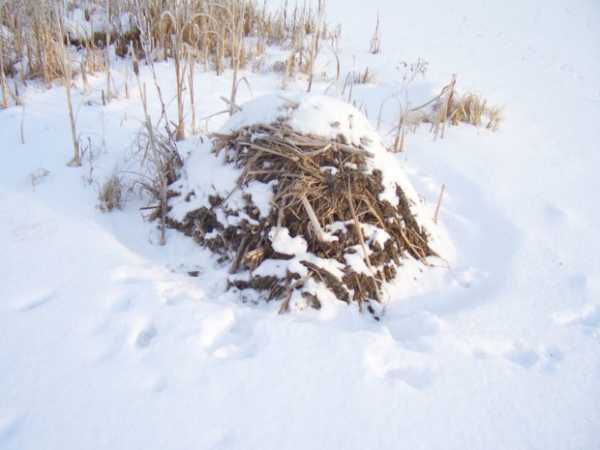 Хатка ондатры посреди водоема Ондатровая хатка зимой