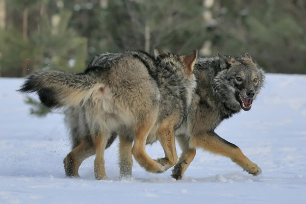 В июне же и особенно в августе подвывкой часто удается вызвать ответный вой волков или взлаивание волчат на заре.