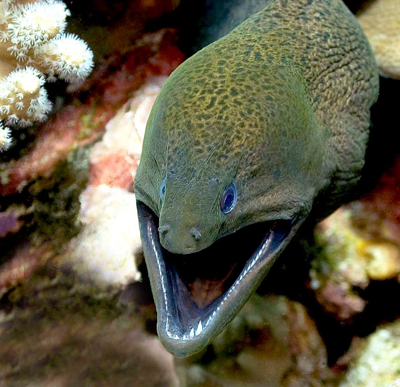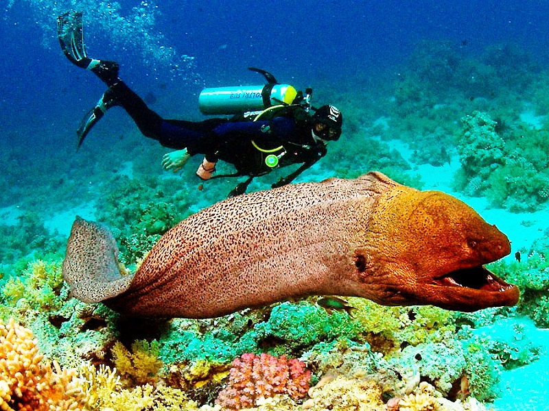 1. Так и мурена нападет на гораздо более крупного противника только в целях самозащиты, но многие дайверы часто неосторожно просовывают руки в небольшие пещеры и гроты, которые расположены в коралловых рифах, хотя как раз там и живут мурены. На всей планете обитает около сотни видов этих рыб, различающихся по размерам.