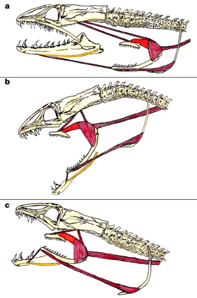 Во время охоты задняя челюсть располагается глубоко в глотке, но стоит добыче оказаться близко к пасти мурены, как она придвигается практически вплотную к передним. Ее основное предназначение — проталкивать еду в пищевод и размельчать ее. Согласитесь, вряд ли добыче удастся вырваться из этого двойного «капкана».