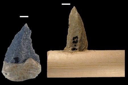 Мы также разработали некоторую форму копья. Мы знаем это из заточенных каменных орудий, на которых все еще есть смола. Эта смола показывает нам, что эти инструменты были наклеены на палочки, которые могли быть брошены в животное. Яд, вероятно, был агентом, который убил животное, а не копьё само по себе.