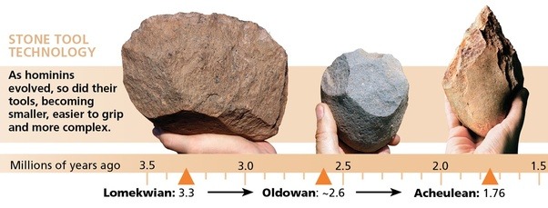 Вы заметили синюю полосу на временной шкале выше? Нижний каменный век также называют ранним каменным веком. Это стадия «до современного человека». Это были инструменты, которые были сделаны в этот период: